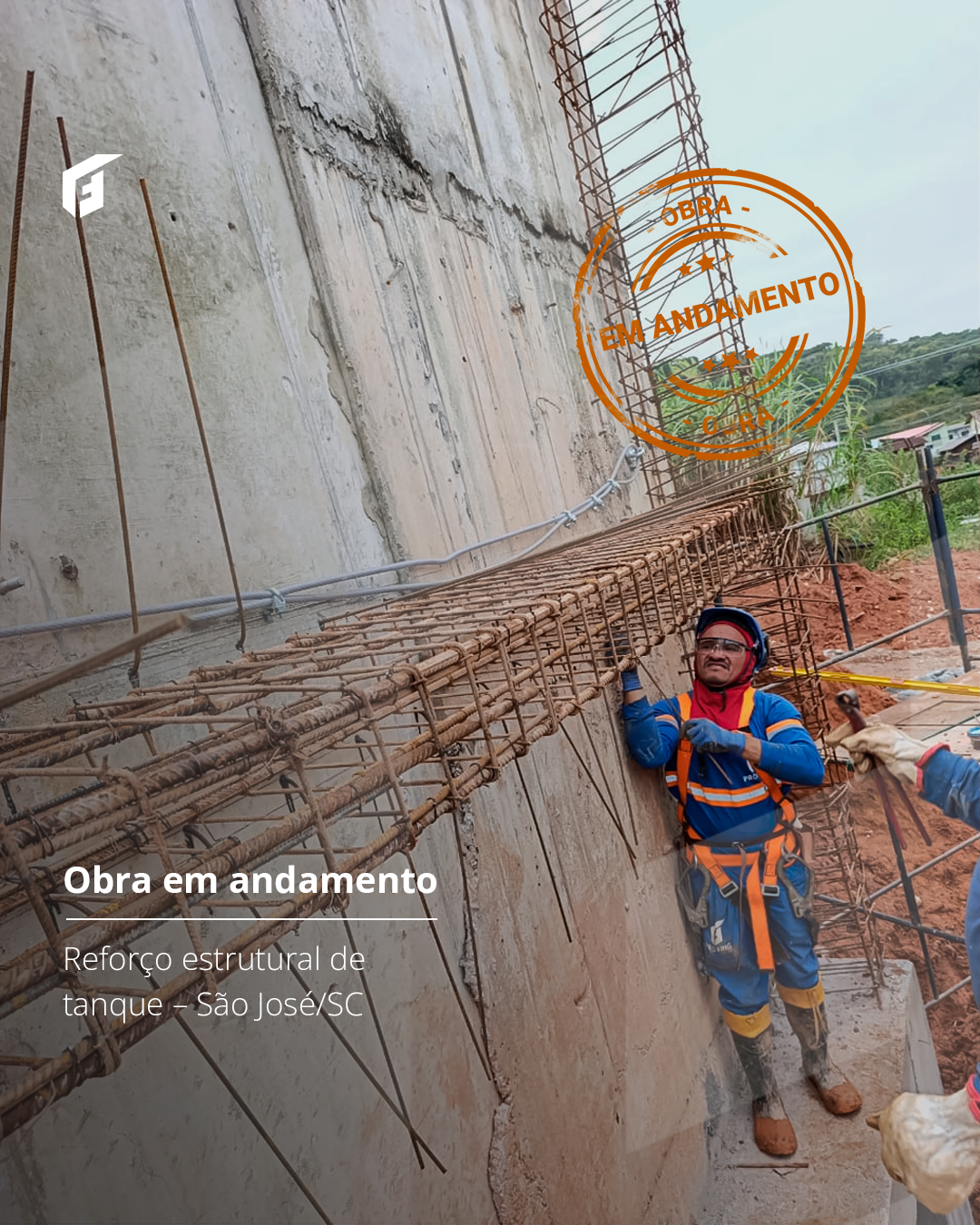 Estamos executando o reforço estrutural de um tanque de estação de tratamento de efluentes para um cliente que é a maior referência mundial no setor alimentício.